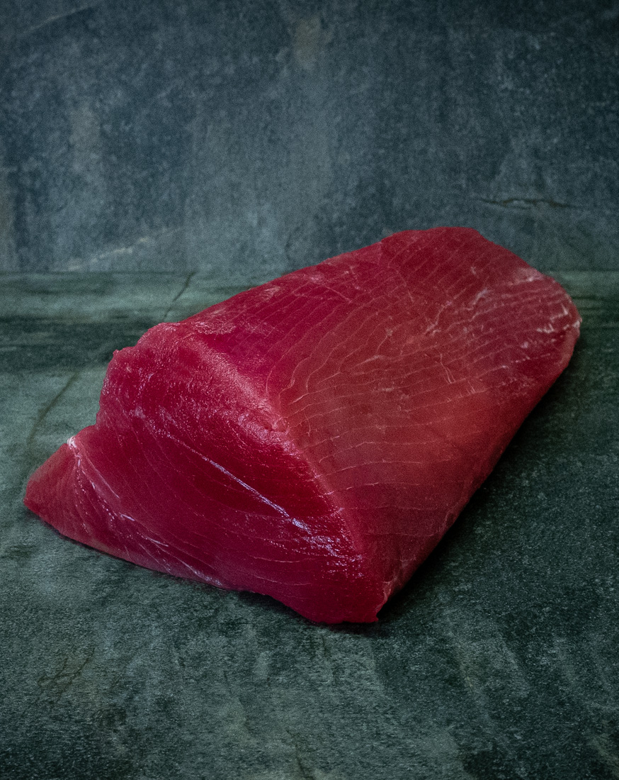 Ein ganzes rohes Lachsfilet aus Norwegen auf einer schwarzen Schieferplatte für Gezer Kunden aus der Gastronomie.