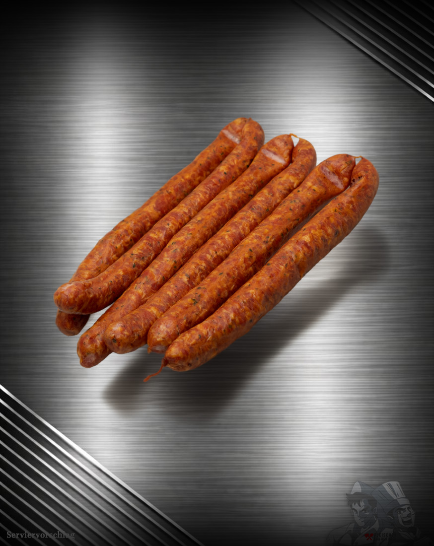 - Gewicht/Portionen: 6 Würste à ca. 70 g (Gesamt ca. 420 g)